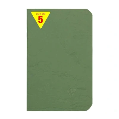 SET OF 5 GREEN NOTEBOOKS: ideal for school lists, schools and communities DURABLE AND RESISTANT: glossy card cover imitating the grain of leather, with a clean, authentic style! SWEET WRITING: SUPERIOR QUALITY Clairefontaine White Velvet Vellum 90 g/m² paper with remarkable opacity and strength. POCKET FORMAT: ultra-practical, take it with you wherever you go! MADE IN FRANCE and PEFC CERTIFIED: for sustainable forest management. 100% RECYCLABLE: plastic-free