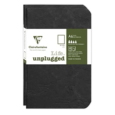 SET OF 2 NOTEBOOKS: ideal for school lists, schools and communities. POCKET FORMAT: ultra-practical, take it everywhere with you! DURABLE AND RESISTANT: glossy card cover imitating the grain of leather, with a clean, authentic style! SWEET WRITING: SUPERIOR QUALITY Clairefontaine White Velvet Vellum 90 g/m² paper with remarkable opacity and strength. STITCHED BINDING: the best value for money. Pages are bound together with staples. MADE IN FRANCE and 100% RECYCLABLE: plastic-free and PEFC-certified for sustainable forest management