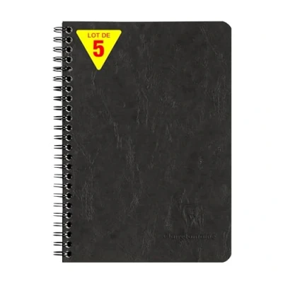 SET OF 5 BLACK NOTEBOOKS: ideal for school lists, schools and communities DURABLE AND RESISTANT: glossy card cover imitates the grain of leather, for a clean, authentic look! PRACTICAL: 3 dividers with storage pockets for documents or loose sheets GENTLE WRITING: SUPERIOR QUALITY Clairefontaine White Velvet Vellum 90 g/m² paper with remarkable opacity and strength. REMOVABLE SHEETS with micro-perforation for easy cutting without tearing. SMALL FORMAT: a must-have for easy transport MADE IN FRANCE and PEFC CERTIFIED: for sustainable forest management. 100% RECYCLABLE: plastic-free