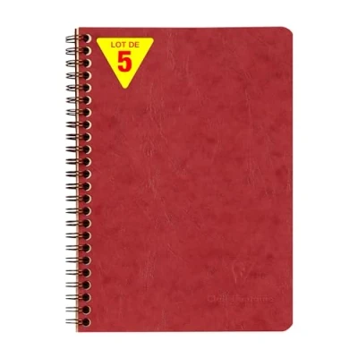 SET OF 5 RED NOTEBOOKS: ideal for school lists, schools and communities DURABLE AND RESISTANT: glossy card cover imitates the grain of leather, for a clean, authentic look! PRACTICAL: 3 dividers with storage pockets for documents or loose sheets GENTLE WRITING: SUPERIOR QUALITY Clairefontaine White Velvet Vellum 90 g/m² paper with remarkable opacity and strength. REMOVABLE SHEETS with micro-perforation for easy cutting without tearing. SMALL FORMAT: a must-have for easy transport MADE IN FRANCE and PEFC CERTIFIED: for sustainable forest management. 100% RECYCLABLE: plastic-free