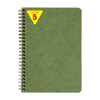 SET OF 5 GREEN NOTEBOOKS: ideal for school lists, schools and communities DURABLE AND RESISTANT: glossy card cover imitates the grain of leather, for a clean, authentic look! PRACTICAL: 3 dividers with storage pockets for documents or loose sheets GENTLE WRITING: SUPERIOR QUALITY Clairefontaine White Velvet Vellum 90 g/m² paper with remarkable opacity and strength. REMOVABLE SHEETS with micro-perforation for easy cutting without tearing. SMALL FORMAT: a must-have for easy transport MADE IN FRANCE and PEFC CERTIFIED: for sustainable forest management. 100% RECYCLABLE: plastic-free