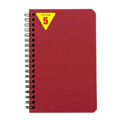 SET OF 5 RED NOTEBOOKS: ideal for school lists, schools and communities DURABLE AND RESISTANT: glossy card cover imitates the grain of leather, for a clean, authentic look! PRACTICAL: 3 dividers with storage pockets for documents or loose sheets GENTLE WRITING: SUPERIOR QUALITY Clairefontaine White Velvet Vellum 90 g/m² paper with remarkable opacity and strength. REMOVABLE SHEETS with micro-perforation for easy cutting without tearing. POCKET FORMAT: ultra-practical, take it with you wherever you go! MADE IN FRANCE and PEFC CERTIFIED: for sustainable forest management. 100% RECYCLABLE: plastic-free