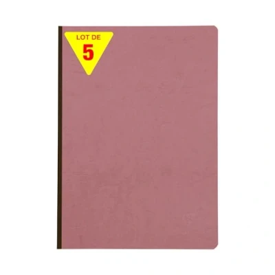 SET OF 5 ANTIQUE PINK COLOUR NOTEBOOKS, ideal for school lists, schools and communities. LARGE FORMAT: the standard, for a larger surface for expression DURABLE AND RESISTANT: glossy card cover imitating the grain of leather, with a clean, authentic style! COMFORT AND QUALITY: thread stitching and cloth spine for flexibility, durability and perfect flat opening. END PAGES: pre-printed and customisable for a meticulous finish. SWEET WRITING: SUPERIOR QUALITY Clairefontaine White Velvet Vellum 90 g/m² paper with remarkable opacity and strength. MADE IN FRANCE and 100% RECYCLABLE: plastic-free and PEFC-certified for sustainable forest management