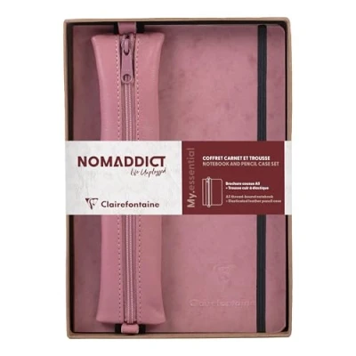 Clairefontaine 793467C Coffret My.Essentials A5 LIGNÉ + trousse Cuir Plate à élastique Rose Antique