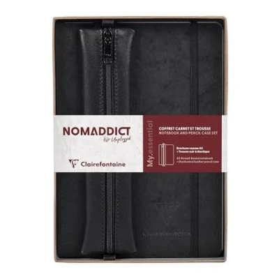Clairefontaine 793468C Coffret My.Essentials A5 LIGNÉ + trousse Cuir Plate à élastique Noir