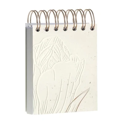 DECORS : Sprinkled with scraps of tulip bulbs destined for the scrap heap, tulip paper combines aesthetics and refinement, and is part of a circular economy and eco-responsible approach. The printed pattern adds a touch of depth to the embossing. POCKET FORMAT: 9x11cm pad: functional, ultra-practical, easy to carry, 160 plain sheets, suitable for professional or family use. REINFORCED DOUBLE SPIRAL: allows full aperture, ideal for double-sided use of sheets GENTLE WRITING: Clairefontaine Ivoire Vélin Velouté 90 g/m² paper of superior quality with remarkable opacity and strength. PEFC-certified for sustainable forest management SAVOIR FAIRE FRANÇAIS : Fabriqué par Clairefontaine Rhodia, leader des fournitures scolaires et de bureaux