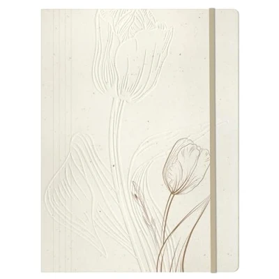 FORMAT: 24x32 cm, ideal for A4-size papers DECORS : Sprinkled with scraps of tulip bulbs destined for the scrap heap, tulip paper combines aesthetics and refinement, and is part of a circular economy and eco-responsible approach. The printed pattern adds a touch of depth to the embossing. CAPACITY: The elastic folder has an average capacity of 200 sheets. PRACTICAL: Flat opening makes it easy to hold documents slipped inside. 3 flaps, ideal for holding your sheets and documents securely. Side elastic band closure, attractive and original. SAVOIR FAIRE FRANÇAIS : Fabriqué par Clairefontaine Rhodia, leader des fournitures scolaires et de bureaux