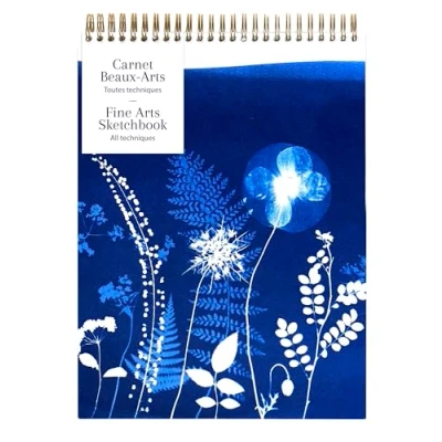 Clairefontaine 83506C A Spiral Bound Notebook with Floral/Cyanotype Motif A4 21 x 29.7 cm 40 Sheets of White Multitechnical Drawing Paper 180 g Cyanotype Collection