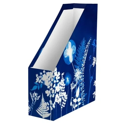 PRACTICAL AND USEFUL: This magazine rack allows you to store your magazines vertically, optimizing space and saving space on your desk. SIZE: This magazine rack is 25 cm long, 10 cm wide and 32.5 cm high. CYANOTYPE DECOR: Invincible Summer pays tribute to the work of Anna Atkins, the 19th-century English botanist who pioneered the cyanotype technique to create herbariums that accurately reflect all the magical details of nature. HOME OFFICE: Each home office accessory is designed to combine functionality and style to enhance your workspace and make organization easier. SOLID AND DURABLE: Manufactured in 2mm-thick rigid cardboard, PEFC-certified for sustainable forest management.