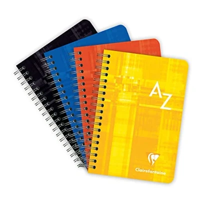 SET OF 5 DIRECTORIES: ideal for school lists, schools and offices GENTLE WRITING: PREMIUM QUALITY Clairefontaine White Vellum Velvety 90 gsm paper with remarkable opacity and resistance REINFORCED DOUBLE SPIRAL: allows full opening, ideal for double-sided use of sheets COVER: washable laminated card for longer notebook life ALPHABETICAL KEYS (A-Z): two-tone and plastic-coated for better identification and greater resistance POCKET SIZE: ultra-practical, take it with you everywhere! AVAILABLE COLORS: tangerine, black, yellow and klein blue. Random delivery. PEFC CERTIFIED: for sustainable forest management Made in France