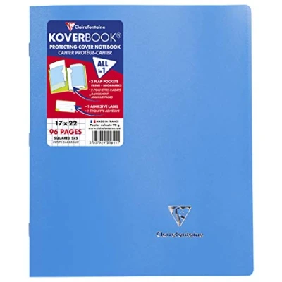 Clairefontaine 951611C Un Cahier Agrafé Koverbook 17x22 cm 96 Pages Petits Carreaux Papier Blanc 90 g Couverture Opaque Polypro Recyclé Couleur Aléatoire