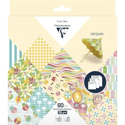 3 DIFFERENT SIZES: an assortment of 60 patterned sheets cut into 3 sizes: 20 sheets in 10x10cm format, 20 sheets in 15x15cm format and 20 sheets in 20x20cm format. 70gsm PAPER: fine, easy-to-fold paper, ideal for origami practice THEMATIC AND TRENDY PATTERNS: 10 different pretty patterns are repeated 2 times per format (pattern on front, solid colour on reverse). AN INFINITY OF CREATIVE POSSIBILITIES: the succession of different folds transforms the sheets of paper into animals, flowers, decorative objects... in different sizes. FRENCH COMPANY: in tune with your needs and requirements, the Clairefontaine brand offers innovative, high-quality and environmentally-friendly products to enhance your imagination and creativity.