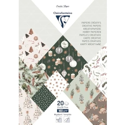 CONTENTS: this pad contains 20 A4 sheets including 18 patterned sheets 160gsm printed on one side (9 patterns repeated 2 times), 2 sheets of labels to cut out for easy finishing of your creations and a creative idea with a template. COSY CHRISTMAS PATTERNS: these papers are perfect for scrapbooking, creative cardmaking or any other creative pursuit during the festive season. AN INFINITY OF POSSIBILITIES: cut, fold, glue, whatever your fancy, paper is ready for a whole host of uses. ACCESSORIES: 2 sheets of labels to cut out are included, as well as a creative idea with a template. FRENCH COMPANY: in tune with your needs and requirements, the Clairefontaine brand offers innovative, high-quality and environmentally-friendly products to enhance your imagination and creativity.