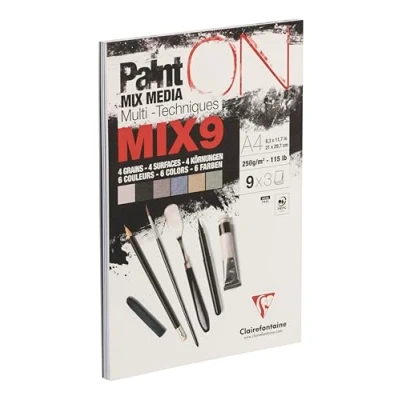 Clairefontaine 960067C Multi technique PaintON MIX9 Glued Pad 27 Sheets Drawing Paper Assorted with 9 Papers x3 A4 21x29.7 cm 250g