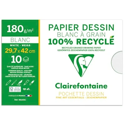 Clairefontaine 96145C School Drawing Pocket 10 Sheets White Paper with 100% Recycled Grain A3 29.7x42 cm 180g Ideal for Plastic Arts