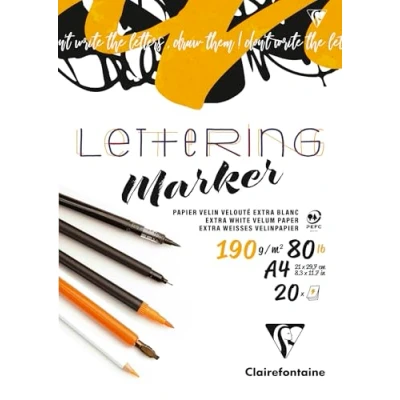 Clairefontaine 96581C Bloc Collé Lettering A4 21x29,7 cm190g 20 Feuilles de Papier Vélin Extra Blanc et Lisse Idéal Pour le