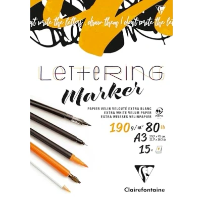 Clairefontaine 96582C Bloc Collé Lettering A3 29,7x42 cm190g 15 Feuilles de Papier Vélin Extra Blanc et Lisse Idéal Pour le