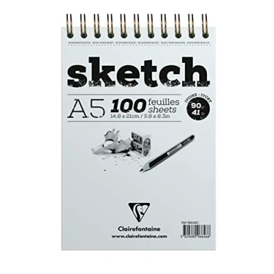 Clairefontaine 96646C Spiral Pad Letterhead Sketch Paper 100 Sheets Very Light Grain Ivory Drawing Tear Off A5 14.8 x 21 cm 90g Pack of 5