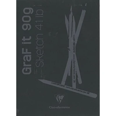Clairefontaine 96842C Graf'It Stapled Pad 80 Sheets Plain Sketch Drawing Paper Detachable A5 14.8x21 cm 90g Black Cover Pack of 10 Pads