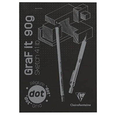 Clairefontaine 96843C Graf'It Stapled Pad 80 Sheets Drawing Sketch Paper DOT Dotted Ruler Detachable A5 14.8x21 cm 90g Black Cover Pack of 5 pads