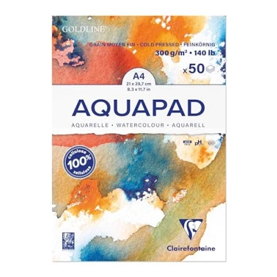 Clairefontaine 975721C Goldline Aqua Pad Glued 50 Sheets Medium Fine Grain White Watercolour Paper A4 21 x 29.7 cm 300g Pack of 3 pads