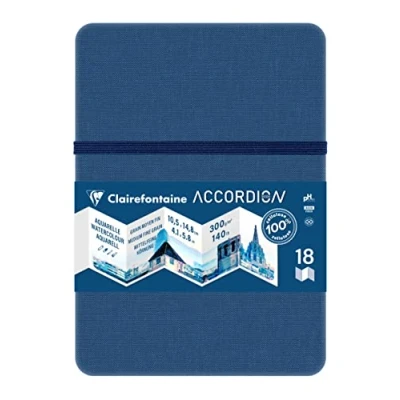 Clairefontaine 975967C Accordion Travel Notebook 18 Pages White Watercolor Paper Medium Fine Grain A6 10.5 x 14.8 cm 300g Ideal for Artists Globetrotters