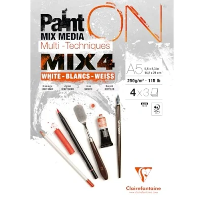 Clairefontaine 975994C Bloc Collé PaintON MIX4 Multi Techniques A5 14,8x21 cm 250g 12 Feuilles Papier Dessin Assorti de 4 Papiers Blancs x3