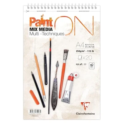 Clairefontaine 975998C Bloc Spiralé Micro Perforé PaintON Multi Techniques A4 21x29,7 cm 250g 20 Feuilles Papier Dessin au Grain Très Léger Blanc