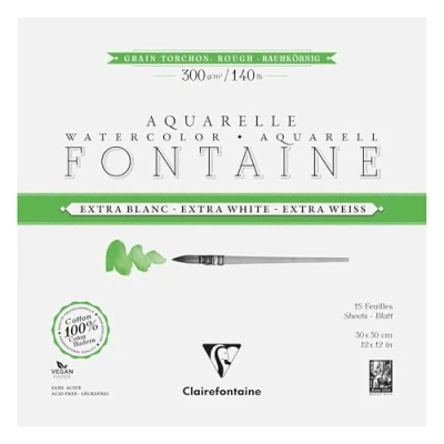 Clairefontaine 976086C Bloc Encollé 4 Côtés Fontaine Extra Blanc Grain Torchon 30x30cm 300g 15 Feuilles Papier Aquarelle 100% Coton Qualité Professionnelle