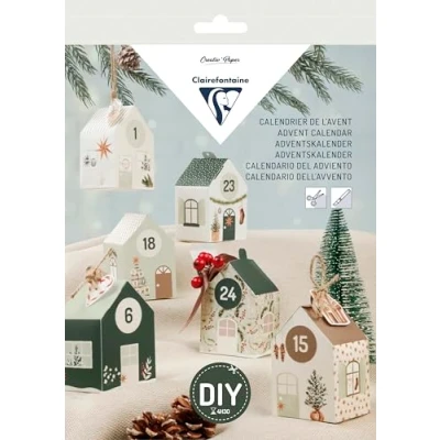 Clairefontaine 97715C Discovery Kit Advent Calendar 24 Small Paper Houses Christmas Decorations 100% DIY Step by Included Decoration Creative Crafts, DIY, Crafts