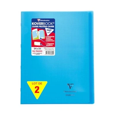 SET OF 2 BLUE NOTEBOOKS: ideal for school lists, schools and communities.MAXI FORMAT: school format, ideal for slipping or sticking A4 sheets (21x29.7 cm) distributed in class. ECONOMICAL: notebook protector all in 1! Sturdy transparent polypro cover, waterproof and tear-proof PRACTICAL: 2 pocket flaps integrated into the cover to mark pages and store useful documents + 1 adhesive label to personalise the notebook STITCHED BINDING: value for money. Pages are bound with staples GENTLE WRITING: Clairefontaine White Velvety Vellum 90 g/m² paper of SUPERIOR QUALITY with remarkable opacity and strength. MADE IN FRANCE and PEFC CERTIFIED: for sustainable forest management