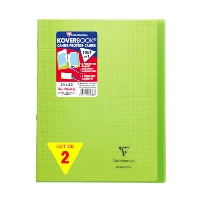SET OF 2 GREEN NOTEBOOKS: ideal for school lists, schools and communities.MAXI FORMAT: school format, ideal for slipping or sticking A4 sheets (21x29.7 cm) distributed in class. ECONOMICAL: notebook protector all in 1! Sturdy transparent polypro cover, waterproof and tear-proof PRACTICAL: 2 pocket flaps integrated into the cover to mark pages and store useful documents + 1 adhesive label to personalise the notebook STITCHED BINDING: value for money. Pages are bound with staples GENTLE WRITING: Clairefontaine White Velvety Vellum 90 g/m² paper of SUPERIOR QUALITY with remarkable opacity and strength. MADE IN FRANCE and PEFC CERTIFIED: for sustainable forest management