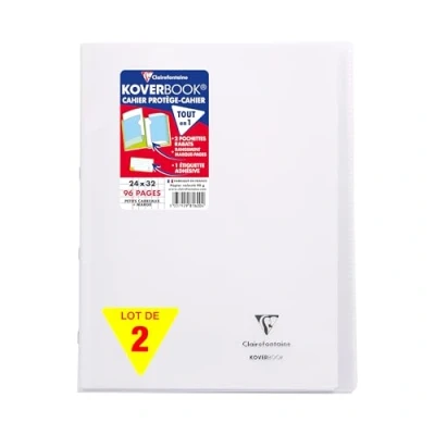 SET OF 2 COLOURLESS NOTEBOOKS: ideal for school lists, schools and communities.MAXI FORMAT: school format, ideal for slipping or sticking A4 sheets (21x29.7 cm) distributed in class. ECONOMICAL: notebook protector all in 1! Sturdy transparent polypro cover, waterproof and tear-proof PRACTICAL: 2 pocket flaps integrated into the cover to mark pages and store useful documents + 1 adhesive label to personalise the notebook STITCHED BINDING: value for money. Pages are bound with staples GENTLE WRITING: Clairefontaine White Velvety Vellum 90 g/m² paper of SUPERIOR QUALITY with remarkable opacity and strength. MADE IN FRANCE and PEFC CERTIFIED: for sustainable forest management