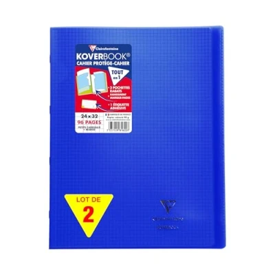 SET OF 2 MARINE BLUE NOTEBOOKS: ideal for school lists, schools and communities.MAXI FORMAT: school format, ideal for slipping or sticking A4 sheets (21x29.7 cm) distributed in class. ECONOMICAL: notebook protector all in 1! Sturdy transparent polypro cover, waterproof and tear-proof PRACTICAL: 2 pocket flaps integrated into the cover to mark pages and store useful documents + 1 adhesive label to personalise the notebook STITCHED BINDING: value for money. Pages are bound with staples GENTLE WRITING: Clairefontaine White Velvety Vellum 90 g/m² paper of SUPERIOR QUALITY with remarkable opacity and strength. MADE IN FRANCE and PEFC CERTIFIED: for sustainable forest management