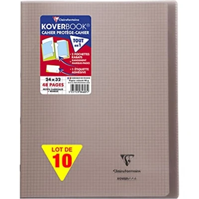 SET OF 10 GREY NOTEBOOKS: ideal for school lists, schools and communities. MAXI FORMAT: school format, ideal for slipping or sticking A4 sheets (21x29.7 cm) distributed in class. ECONOMICAL: notebook protector all in 1! Sturdy transparent polypro cover, waterproof and tearproof. STITCHED BINDING: value for money. Pages are stapled together. PRACTICAL: 2 pocket flaps integrated into the cover to mark pages and store useful documents + 1 adhesive label to personalise the notebook SWEET WRITING: SUPERIOR QUALITY Clairefontaine White Velvet Vellum 90 g/m² paper with remarkable opacity and strength. MADE IN FRANCE and PEFC CERTIFIED: for sustainable forest management