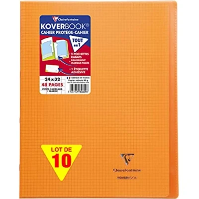 SET OF 10 ORANGE NOTEBOOKS: ideal for school lists, schools and communities. MAXI FORMAT: school format, ideal for slipping in or sticking on A4 sheets (21x29.7 cm) distributed in class. ECONOMICAL: notebook protector all in 1! Sturdy transparent polypro cover, waterproof and tearproof. STITCHED BINDING: value for money. Pages are stapled together. PRACTICAL: 2 pocket flaps integrated into the cover to mark pages and store useful documents + 1 adhesive label to personalise the notebook SWEET WRITING: SUPERIOR QUALITY Clairefontaine White Velvet Vellum 90 g/m² paper with remarkable opacity and strength. MADE IN FRANCE and PEFC CERTIFIED: for sustainable forest management
