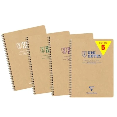 Clairefontaine 9853C Uninotes carnet reliure intégrale 22,5x29,7cm 160p détachables et perforées 4 trous ligné assortiment Paq de 5