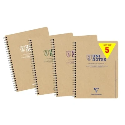 Clairefontaine 9860C Uninotes Project Book 16x21cm 160p détachables Q.5x5 + 3 intercalaires assortiment Paq de 5