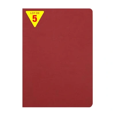 SET OF 5 RED NOTEBOOKS: ideal for school lists, schools and communities DURABLE AND RESISTANT: glossy card cover imitating the grain of leather, with a clean, authentic style! SWEET WRITING: SUPERIOR QUALITY Clairefontaine White Velvet Vellum 90 g/m² paper with remarkable opacity and strength. GRAND FORMAT: the standard, for a larger expression area MADE IN FRANCE and PEFC CERTIFIED: for sustainable forest management. 100% RECYCLABLE: plastic-free