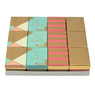 Clairefontaine K 29055 BXC A Set of 12 Mini Assorted Cardboard Boxes Pattern: Kraft Look, Panther, Geometric, Pink/Gold/Pastel Blue Ideal For: Jewelry Box, Gift Box