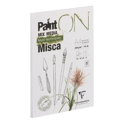 WHITE MISCA PAINTON PAPER: this 100% cellulose paper is THE perfect compromise between dry and wet techniques! Thanks to its high weight, this versatile paper is scratch-resistant and can withstand several layers. SLIGHTLY ROUGH GRAIN: this white paper, embedded with subtle plant fibre fragments and a slightly rough grain, will effortlessly bring your creations to life. Its surface allows for beautiful blending with pencil, chalk or pastel MULTI-TECHNIQUE PAPER: a true mixed media paper, it is suitable for pencil, felt-tip pen or pen drawing, but is also perfectly suited to gouache, ink or acrylic A4 SIZE: this 15-sheet glued pad is ideal for anyone looking for excellent value for money. Its finish allows you to keep your artwork or detach it easily without tearing it ACID-FREE: this PEFC-certified paper is acid-free and pH neutral for perfect preservation of drawings over time