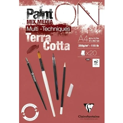 Clairefontaine PaintON 976153C Multi Technical Pasted Pad Terracotta A4 21 x 29.7 cm 250 g 20 Sheets of Drawing Paper with Slightly Rough Grain