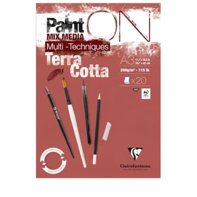 Clairefontaine PaintON 976154C Multi Technical Pasted Pad Terracotta A3 29.7 x 42 cm 250 g 20 Sheets of Drawing Paper with Slightly Rough Grain