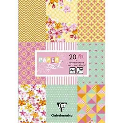 CONTENT: this block contains 20 A5 patterned sheets (14.8x21cm) 200g/m² printed on the front (10 patterns repeated twice) including 2 sheets of labels to be cut to easily finalize your creations TRENDY PATTERNS: these papers are perfect for scrapbooking, creative card making or any other creative desires AN INFINITY OF POSSIBILITIES: to be cut, folded, glued, according to your desires, the paper is ready for many uses ACCESSORIES: 2 sheets of alphabet stickers (stickers) are included FRENCH SOCIETY: closer to your needs and requirements, the Clairefontaine brand offers innovative, high-quality and environmentally friendly products to serve your imagination and your creativity