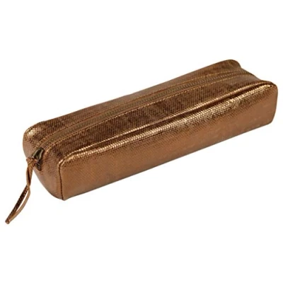 Clairefontaine Rectangular Pencil Case 21 x 6 4cm, Genuine Lambskin Leather, Metal Zipper, Bronze
