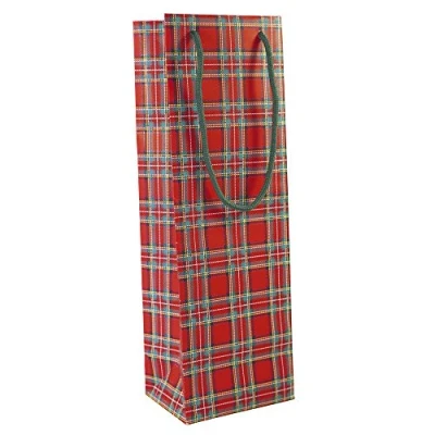 Clairefontaine Ref 211769C British Christmas Tartan Supreme Bottle Gift Bag (Single Bag) 12. x 9.5 38cm in Size Suitable for Gifts & Presents
