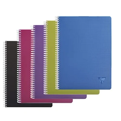 Clairefontaine Ref 329126C Linicolor Wirebound Notebook (90 Sheets) A4 Size, 90gsm Brushed Vellum Paper, Polypro Cover, Squared Ruling Random Colour Cover