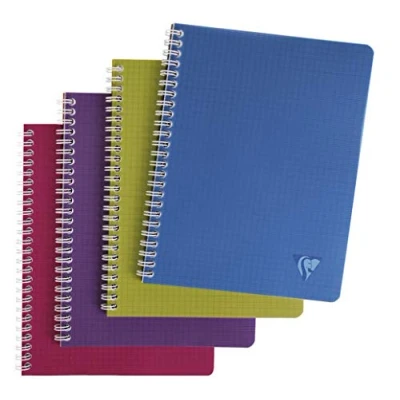 SET OF 10 NOTEBOOKS: ideal for school lists, schools and communities. SMALL FORMAT: school size, easy to store in schoolbag THICK, TRANSLUCENT POLYPRO COVERING: for high resistance to handling, with a grooved texture for an original feel and premium finish. SWEET WRITING: SUPERIOR QUALITY Clairefontaine White Velvet Vellum 90 g/m² paper with remarkable opacity and strength. REINFORCED WHITE DOUBLE SPIRAL: allows full aperture, ideal for double-sided sheet use 5 INTENSIVE COLOURS: Petroleum Blue, Cherry Red, Kiwi Green, Fig Violet and Black. Random delivery. MADE IN FRANCE and PEFC CERTIFIED notebooks: for sustainable forest management.