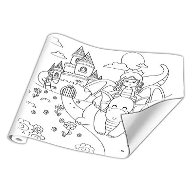 Clairefontaine Ref 34178C Printed Paper Roll (Single Roll) 10mx0.50m Sized, 120gsm Drawing Paper, Pre for Colouring, Blue on One Side Princess Designs