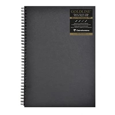 GOLDLINE NOTEBOOK: with its sober and timeless look, this sketchbook combines solidity and elegance. BLACK SKETCH PAPER: this black paper, with a light grain and pleasant to trace, is ideal for sketching and sketching. Its heavy 140g weight also allows it to withstand low humidity techniques such as ink or gouache. IDEAL FOR DRAWING: this paper is ideal for drawing in pencil, charcoal, chalk, pen, ink or gouache. It allows you to draw quickly without fear of pressing, fading or erasing. A3 FORMAT: thanks to its black hard cover and its spiral finish, this notebook is resistant and can facilitate drawing without support. Its imitation canvas cover is fully customizable. ACID-FREE: this paper is acid-free and has a neutral pH for perfect preservation of the drawings over time. FINE ARTS SPECIALIST PAR EXCELLENCE: Clairefontaine Rhodia offers high-quality products adapted to your needs and to all drawing techniques.